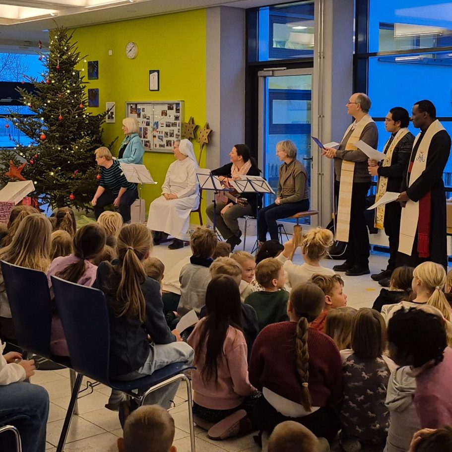Den Auftakt machte die Bandklasse 5a mit dem Song „Sascha“, bevor die Klasse 1a mit ihrem pfiffigen „Nikolaus Rap“ für viele schmunzelnde Gesichter sorgte. Anschließend entführte die Klasse 2a mit dem Lied „Wichtel Tomte“ in eine winterliche Wichtelwelt, ehe die Musikgruppe 8/9 mit dem gefühlvollen Song „Snowman“ eine ruhige, nachdenkliche Atmosphäre schuf. In diesen Momenten zeigen Kinder ganz besonders, wie viel Ausdruckskraft, Emotion und Persönliches in Musik und Bewegung steckt.