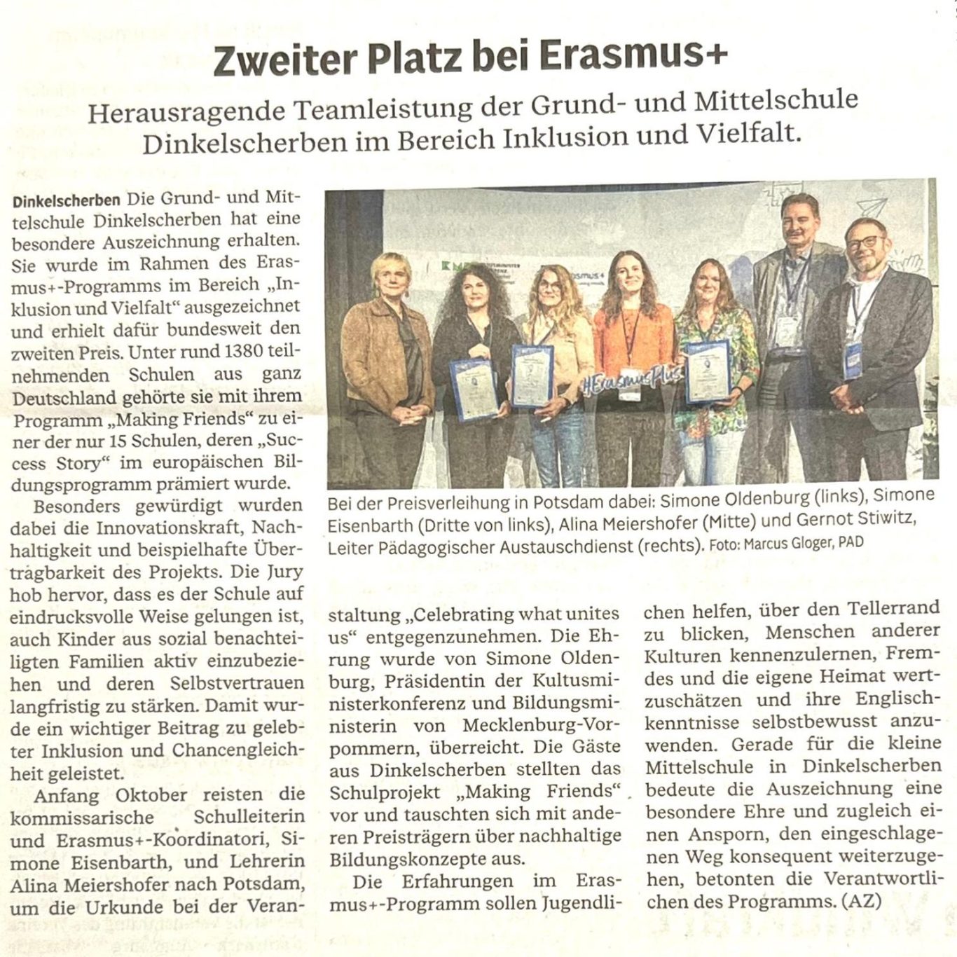 GMS Dinkelscherben: Auszeichnung zur "Erasmus+ Success Story 2025"!