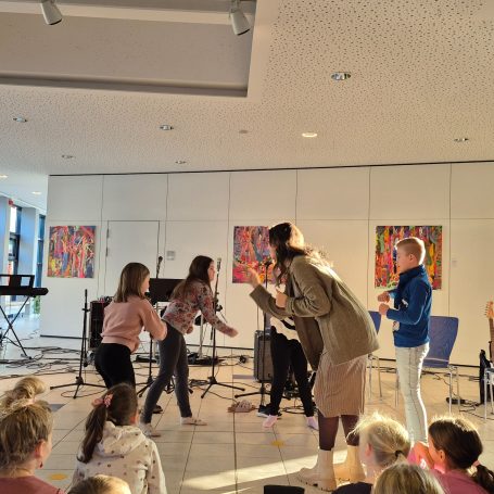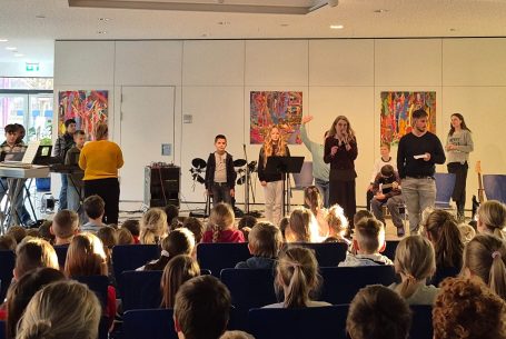 Klassen und Gruppen unserer Grund- und Mittelschule gestalteten ein buntes, abwechslungsreiches Programm, das das Publikum bestens unterhielt. Dabei wurde deutlich, wie wichtig es ist, dass Kinder nicht nur in klassischen Unterrichtsfächern, sondern auch mit ihrer künstlerischen Seite sichtbar werden dürfen.